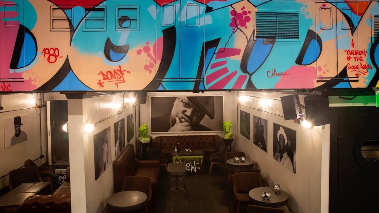 Nkiru Bar destaca por su estética al estilo neoyorkino , sus murales homenajean la cultura hip hop fusionado con su excelente sistema de sonido Funktion - One.